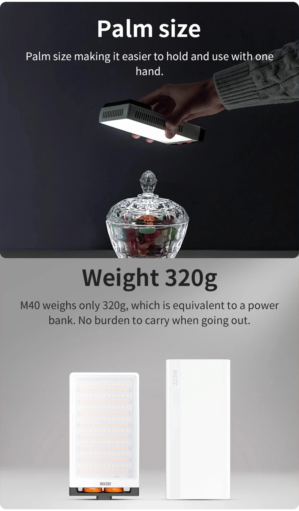Be the first to review “ZHIYUN FIVERAY M40 40W Led Lights Pocket Light Photo Video Lamp Handheld Fill Light Photography Lighting”