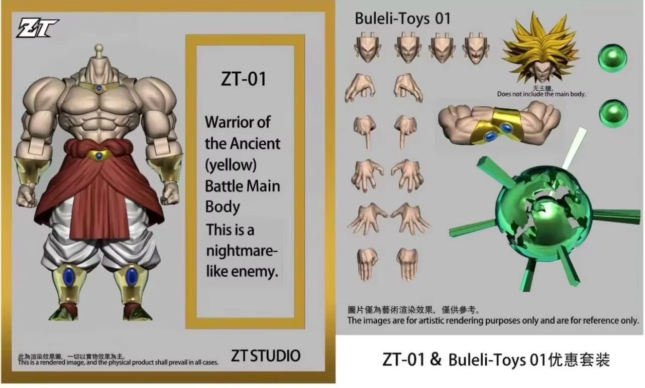 【Name】ZT Toys Studio Ancient Warrior Broly Aciton Figure 1/12 Green Yellow Long Hair Broli Figure Dragon Ball Anime Collect Model TOYS