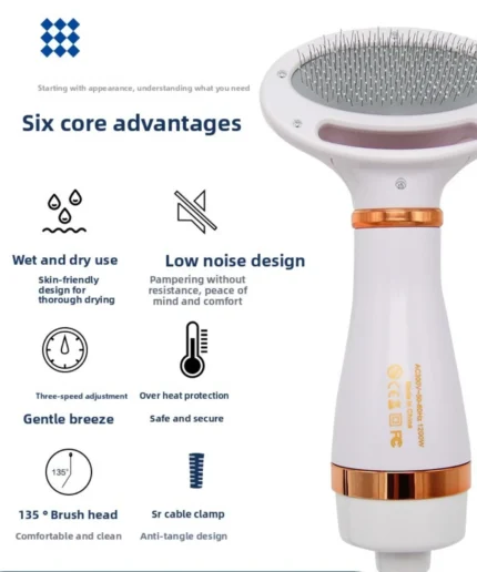 Pet Hair Dryer Brush 2-in-1 Dog Dryers and Combs Brush Cat Grooming Puppy Fur Blower Drying Machine Adjust Temperature Low Noise